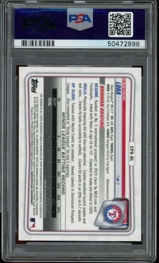 Bayron Lora 2020 Bowman Chrome Prospects 1st Bowman Autograph #CPABL RC– Graded 10 (PSA) - Rookie Card