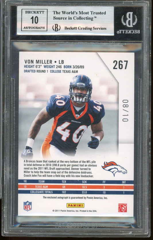 Von Miller 2011 Panini Rookies & Stars Emerald RPA #267 RC – #8 Of 10 – Graded Mint 9 (BGS) With Graded 10 Autograph - Rookie Card