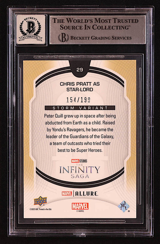 Chris Pratt Signed Star-Lord 2022 Upper Deck Marvel Studios Allure Storm #29 #154/199 (BGS | Autograph Graded BGS 10) - Beckett Witnessed / Serially Numbered #154/199