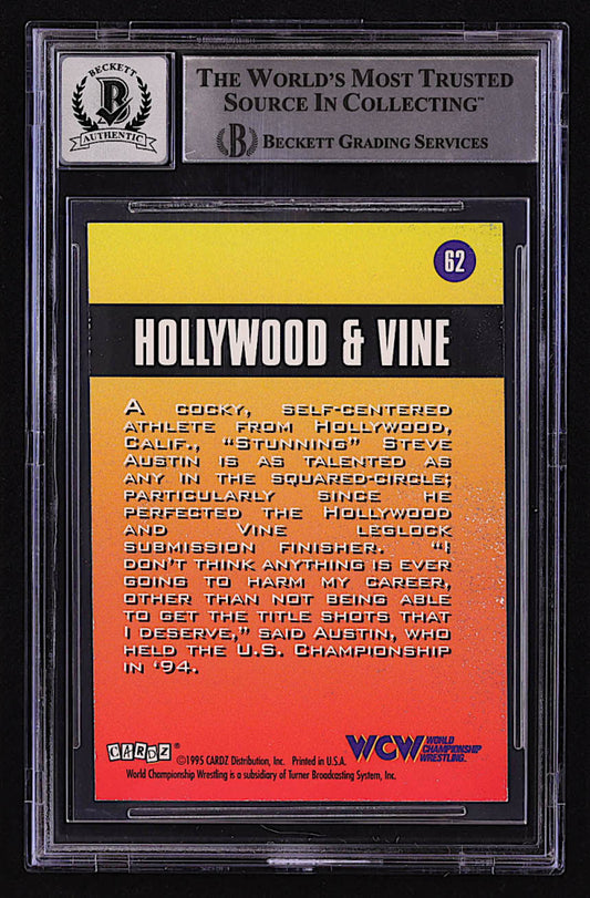 Steve Austin Signed Flying Elbow 1995 CARDZ WCW Main Event #65 (BGS | Autograph Graded BGS 10) - Beckett Witnessed