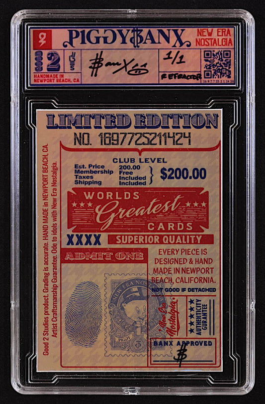 Piggybanx - Ja Morant "JA" Aqua Blood Red Refractor #1/1 Art Card - Serially Numbered #1 / 1