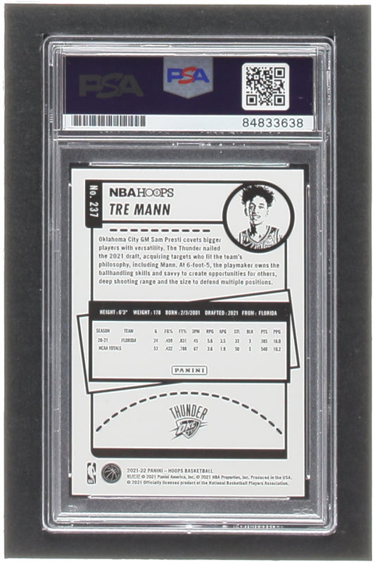 Tre Mann Signed 2021-22 Hoops #237 RC (PSA) - Rookie Card