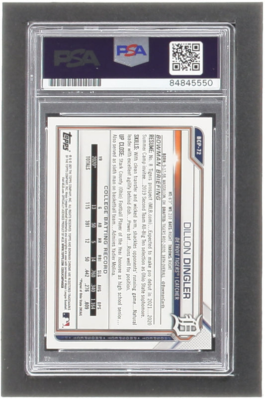 Dillon Dingler Signed 2021 Bowman Chrome Sapphire Prospects #BCP72 RC (PSA) - Rookie Card