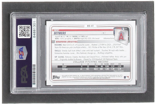 Reid Detmers Signed 2020 Bowman Draft #BD41 RC Inscribed "No Hitter 5/10/22" (PSA | Auto 10) - Rookie Card