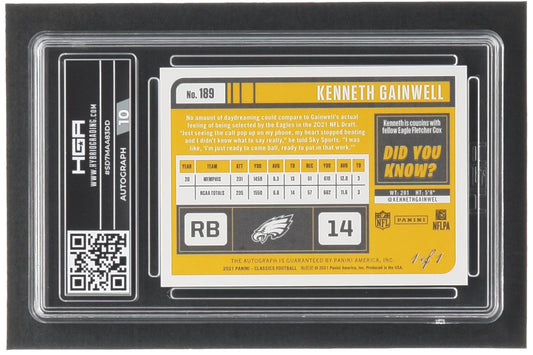 Kenneth Gainwell 2021 Classics Significant Signatures Black #189 RC #1/1 (HGA 9 | Autograph Grade 10) - Rookie Card | Serially Numbered #1 / 1
