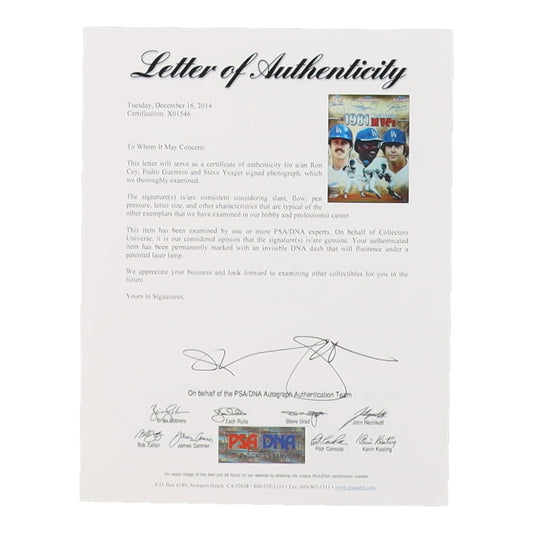 Ron Cey, Steve Yeager & Pedro Guerrero Signed (PSA) Dodgers 16x20 Photo