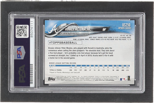 Ronald Acuna Jr. Signed 2018 Topps Update #US250 RC (PSA | Auto 9) - Rookie Card