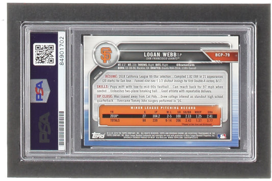 Logan Webb Signed 2019 Bowman Chrome Prospects #BCP79 RC (PSA) - Rookie Card