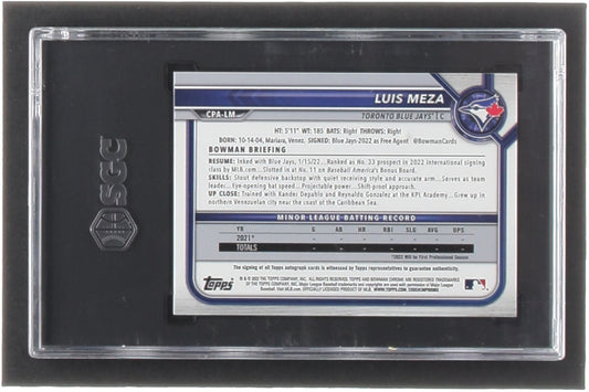 Luis Meza 2022 Bowman Chrome Prospect Autographs Yellow Refractors #CPALM #40/75 RC (SGC 9.5 | Autograph Graded SGC 10) - Rookie Card