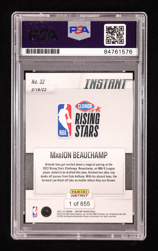 MarJon Beauchamp Signed 2022-23 Panini Instant #32 RC (PSA) Rookie Card