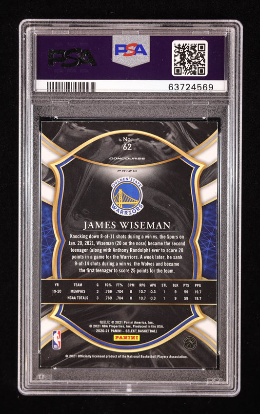 James Wiseman Signed 2020 Panini Select Silver Prizm #62 RC (PSA | Auto Grade 10) Rookie Card