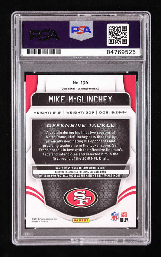 Mike McGlinchey Signed 2018 Certified Mirror Orange #196 #191/225 RC (PSA) Rookie Card | Serially Numbered #191/225
