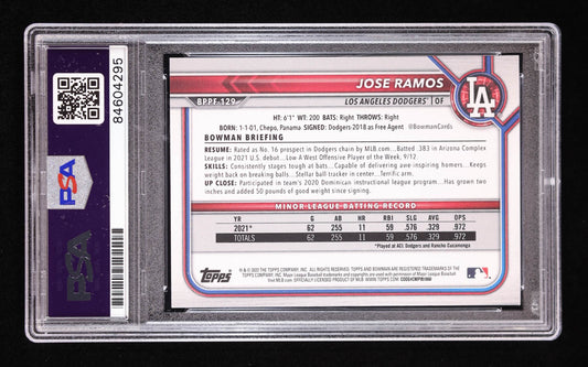 Jose Ramos Signed 2022 Bowman 1st Edition #BPPF129 RC (PSA | Auto 10) Rookie Card | Autograph Graded 10