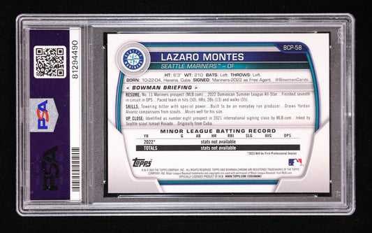 Lazaro Montes Signed 2023 Bowman Chrome Mega Box Prospects Refractors #BCP58 RC (PSA 10) Rookie Card