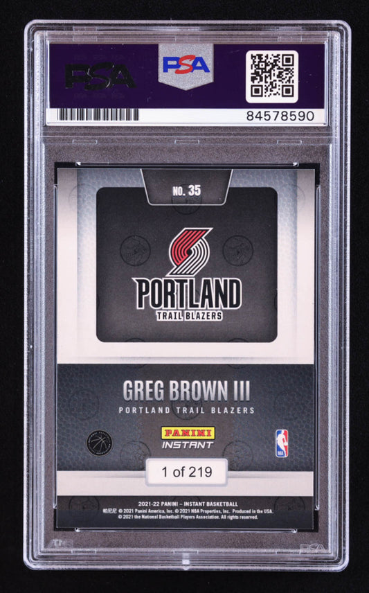 Greg Brown III Signed 2021-22 Panini Instant RPS First Look #35 RC (PSA | Auto 9) Rookie Card