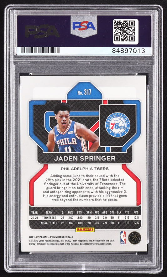 Jaden Springer Signed 2021-22 Panini Prizm #317 RC (PSA | Autograph Graded PSA 10) Rookie Card