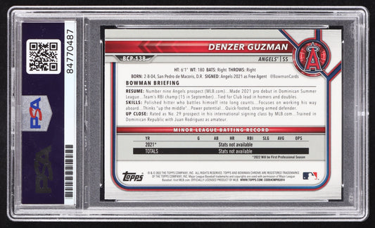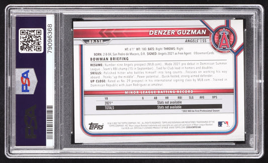 Denzer Guzman Signed 2022 Bowman Prospects #BP138 RC (PSA 10 | Auto 10) Rookie Card