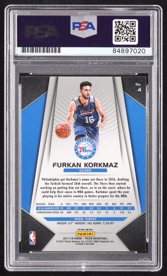 Furkan Korkmaz Signed 2017-18 Panini Prizm Prizms Silver #4 RC (PSA | Auto 10) Rookie Card