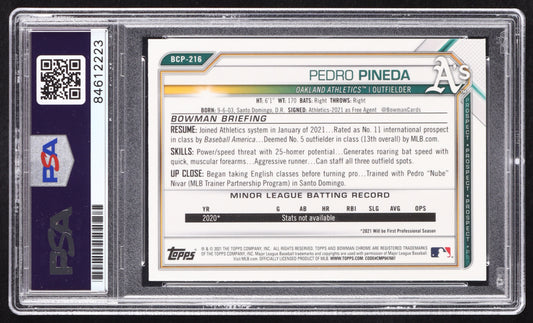 Pedro Pineda Signed 2021 Bowman Chrome Prospects #BCP216 RC (PSA | Auto 10) Rookie Card