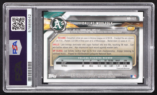 Dallas Woolfolk Signed 2018 Bowman Draft #BD127 RC (PSA | Autograph Graded PSA 10) Rookie Card