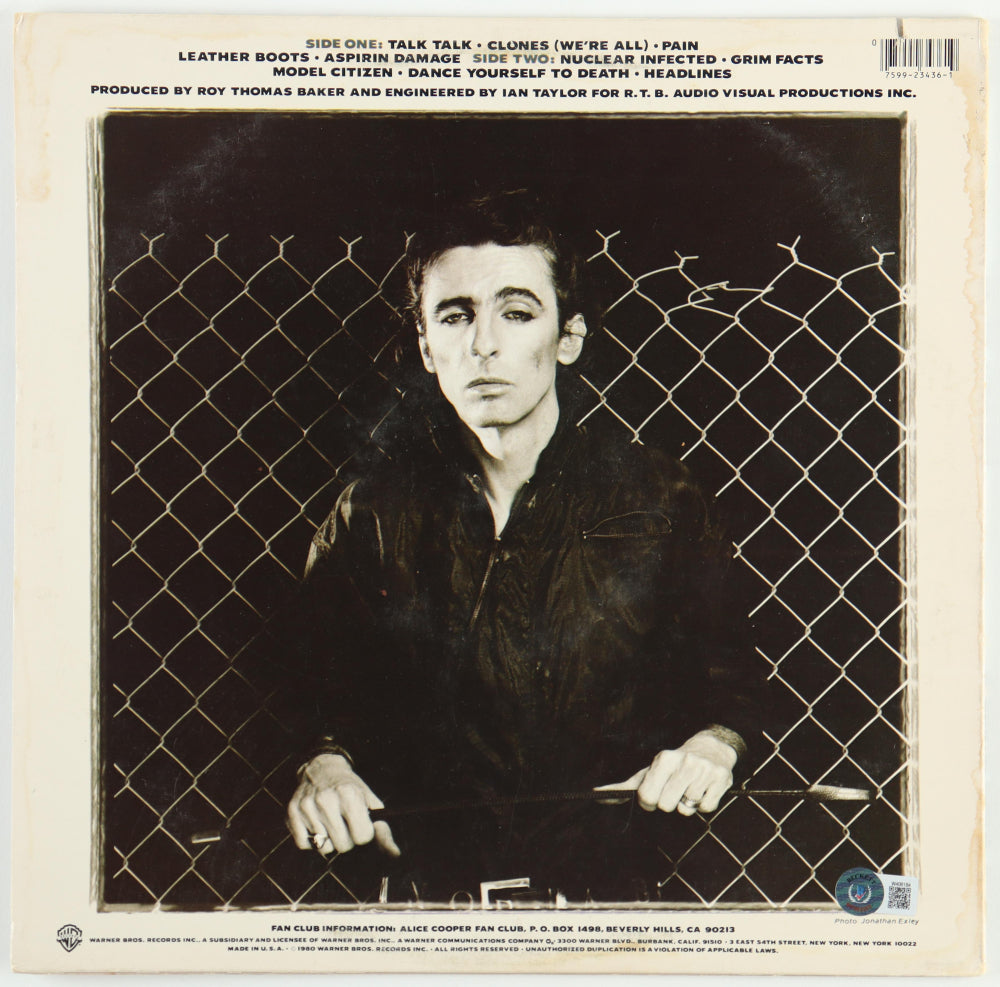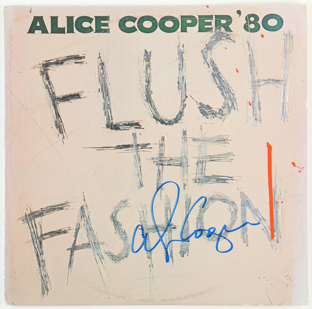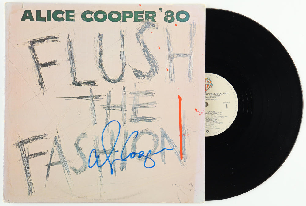 Alice Cooper Signed (Beckett) "Flush the Fashion" Vinyl Record Album - Beckett Witnessed