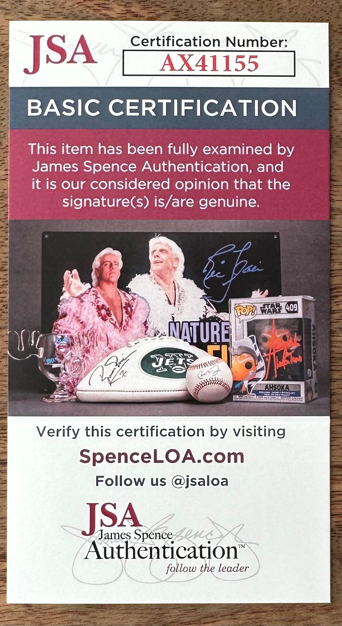 The autograph includes an official James Spence Authentication (JSA) hologram and matching COA for authenticity purposes.