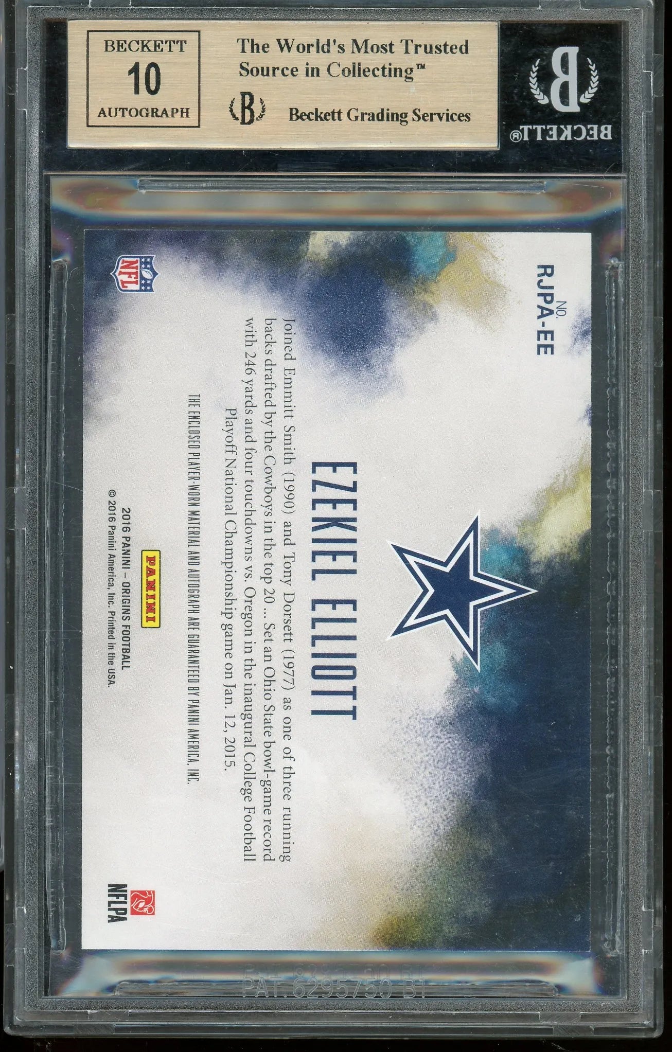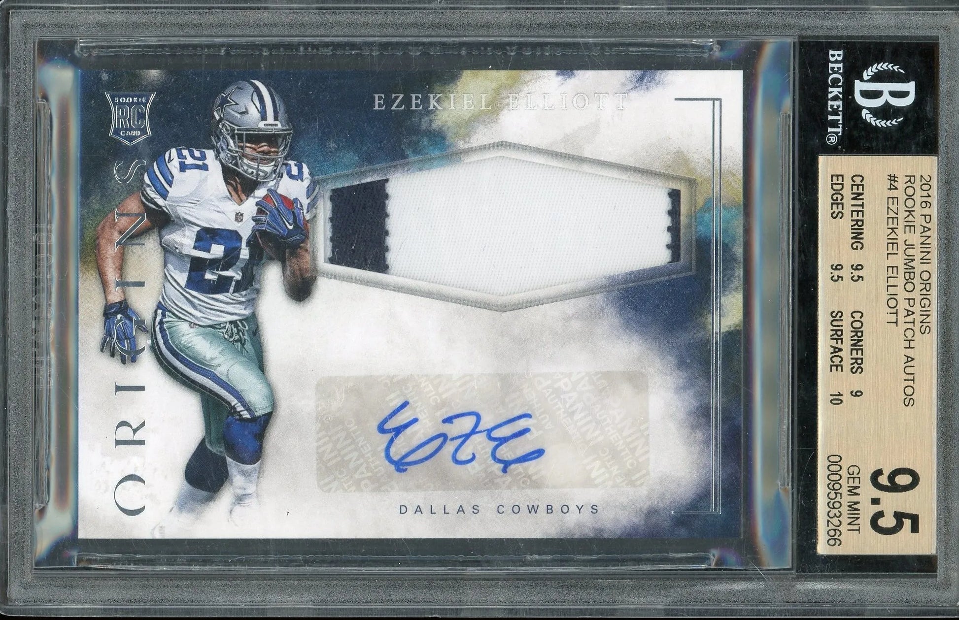 Ezekiel Elliott 2016 Panini Origins RPA Rookie Jumbo Patch #4 RC – Graded Gem Mint 9.5 - Auto 10 (BGS) - Rookie Card
