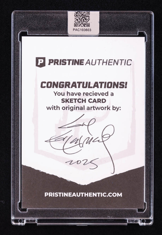 This sketch card includes original art by world-renowned illustrator, Guy Gilchrist.