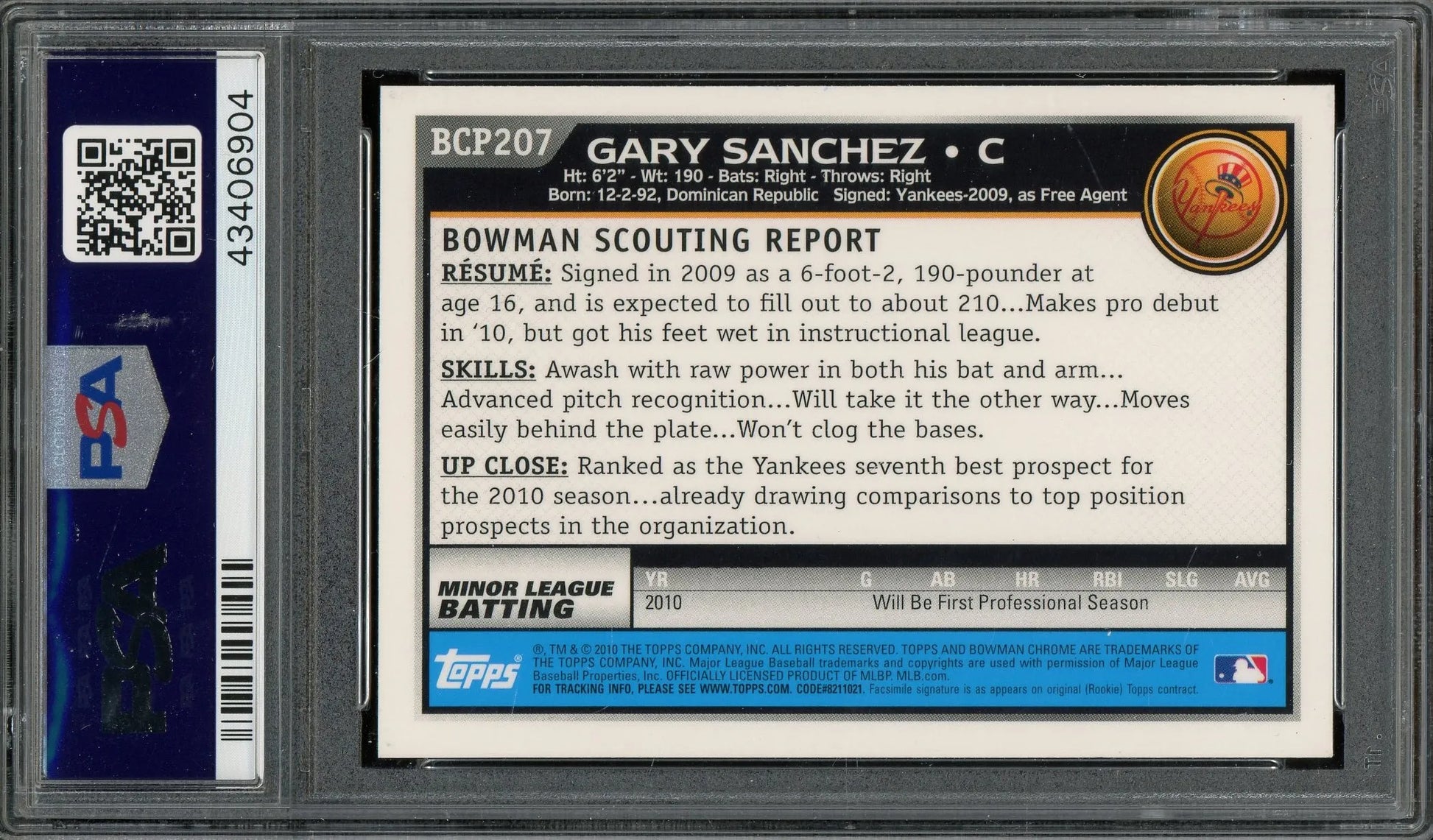 Gary Sanchez Signed 2010 Bowman Chrome Prospects 1st Bowman #BCP207 RC – Auto Gem Mint 10 (PSA) - Rookie Card