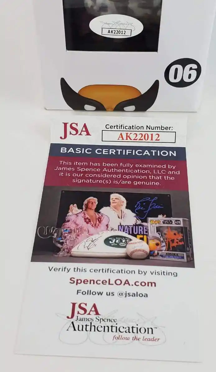 This autographed Funko Pop has been personally hand-signed by actor, Hugh Jackman. This autograph is certified by James Spence Authentication (JSA).