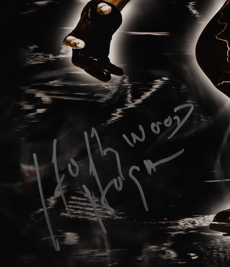 Custom frame measures approximately Photo measures 23.5" x 27.5" in size and features a photo that has been hand-signed by Hulk Hogan (HOF).