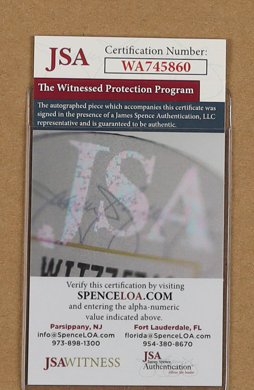 The autograph includes an official James Spence Authentication (JSA) hologram and matching COA for authenticity purposes. The signing of this item was witnessed by JSA.