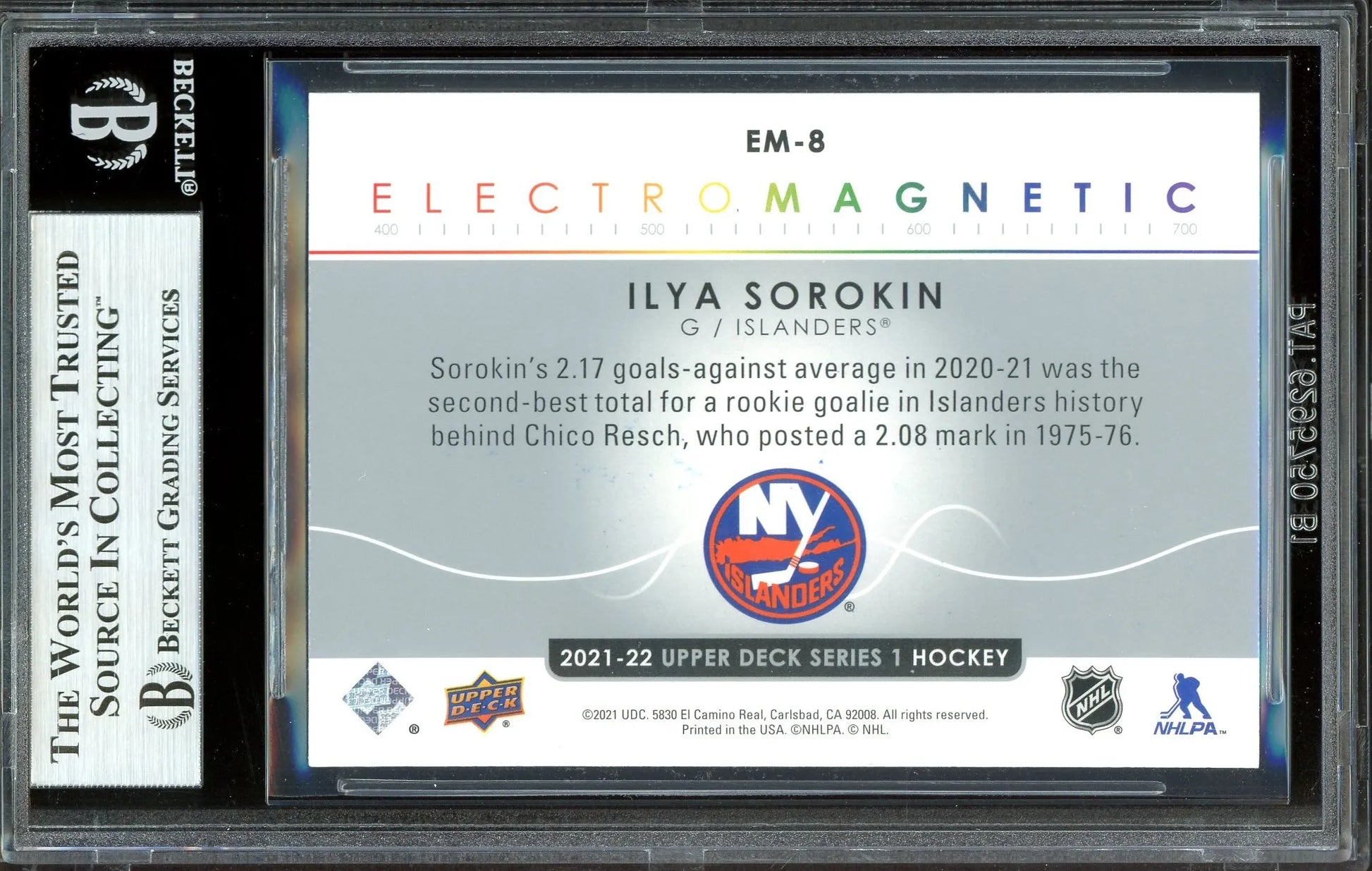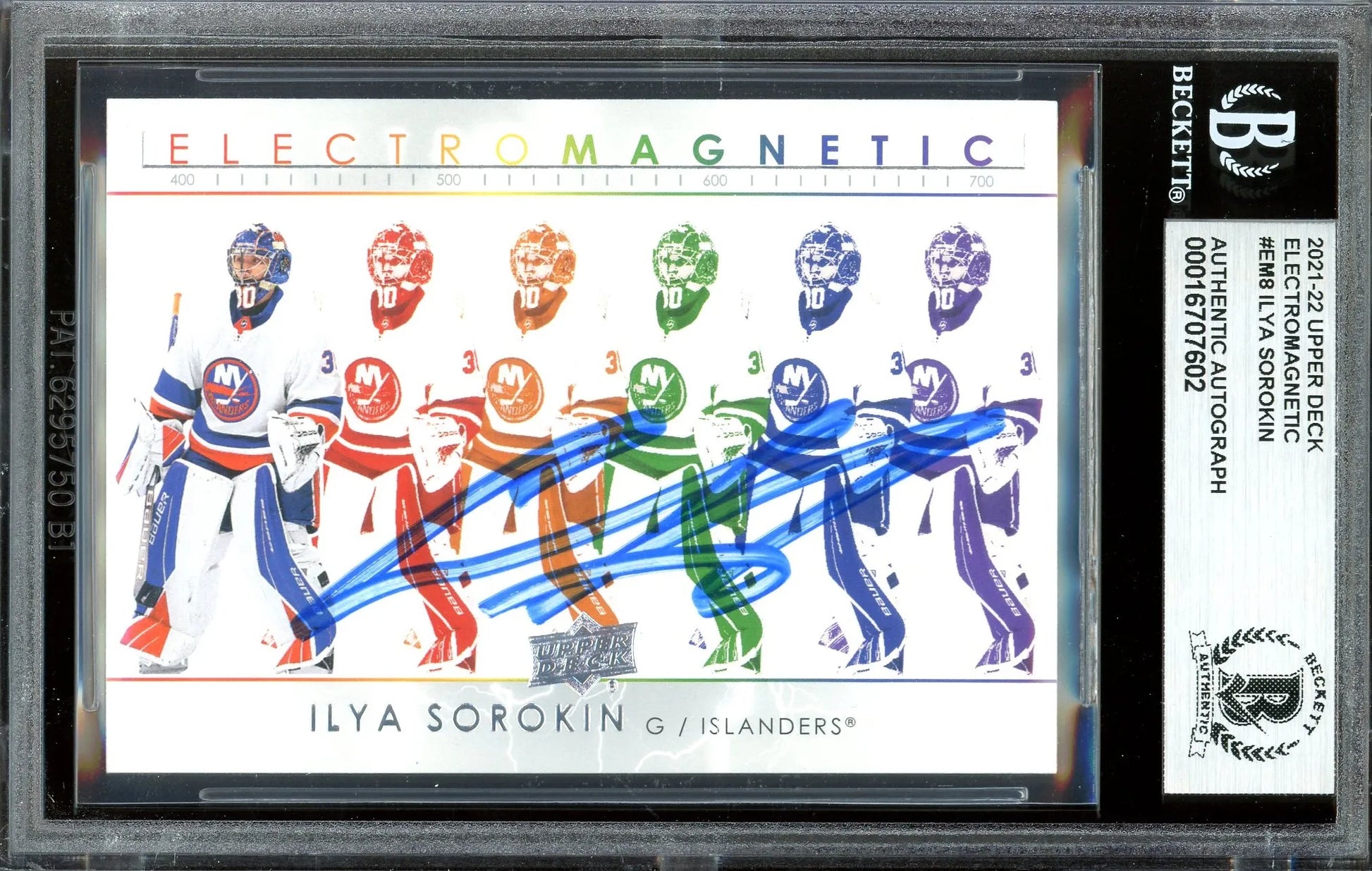 Ilya Sorokin Signed 2021 Upper Deck Electromagnetic Card #EM8 RC (BAS) - Rookie Card