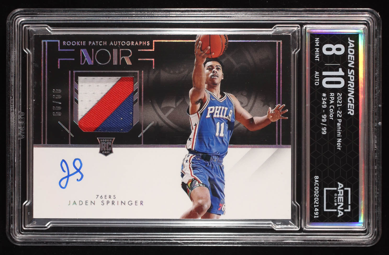 Jaden Springer Signed 2021-22 Panini Noir #349 #99/99 RC (Arena Club 8) Rookie Card | Serially Numbered # 99 / 99 | Auto Grade Arena Club 10