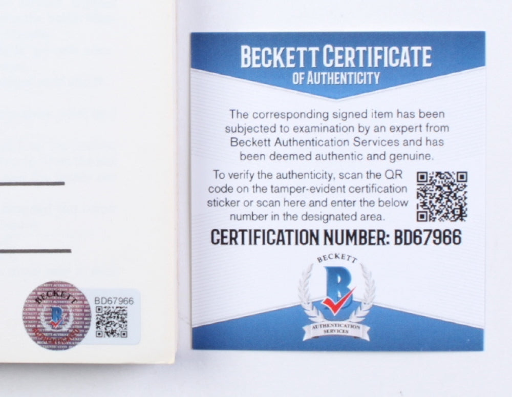 The autograph includes an official Beckett Authentication Services serially-numbered hologram and matching COA for authenticity purposes.