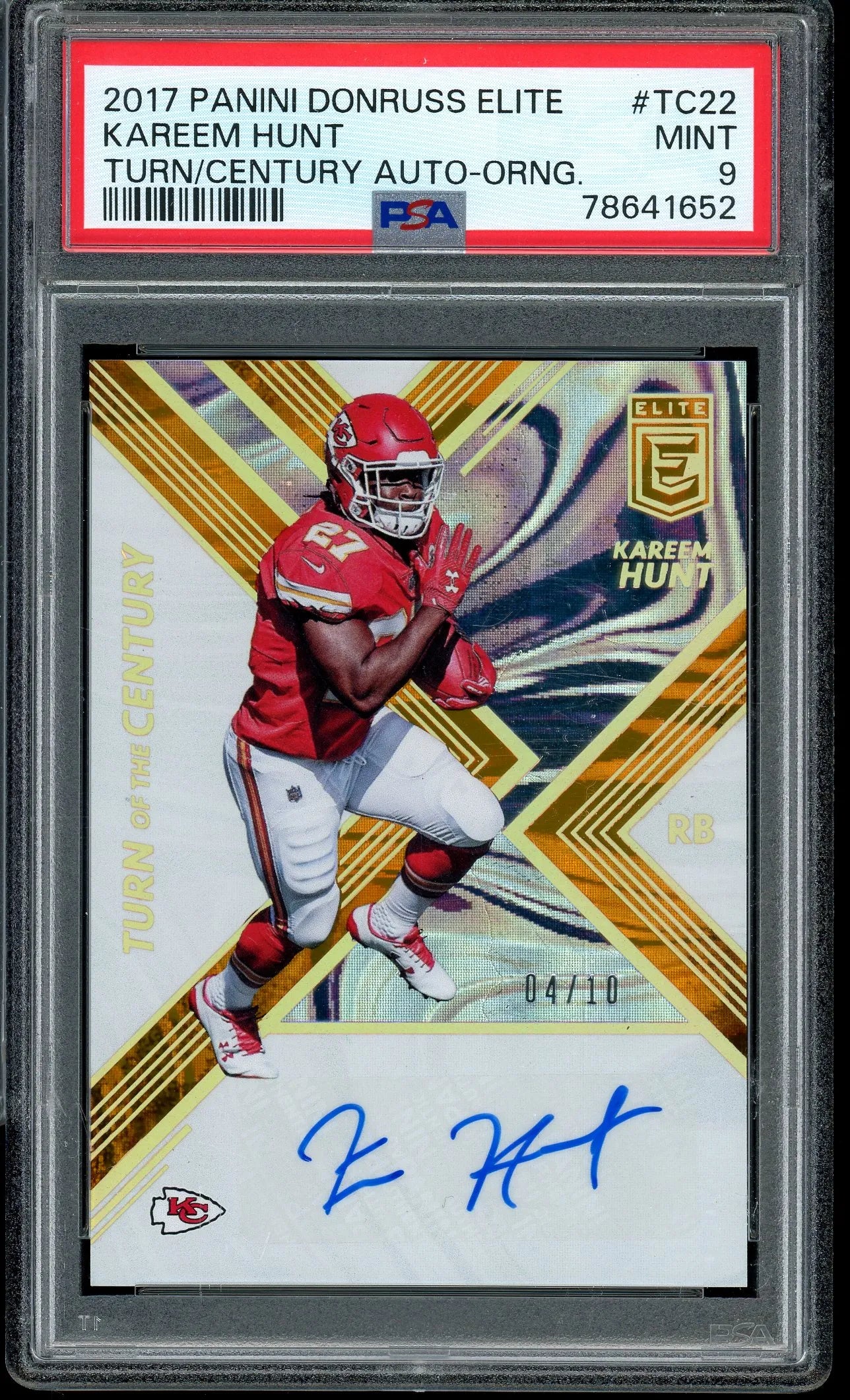 Kareem Hunt 2017 Panini Donruss Elite Turn Of The Century Orange Autograph #TC22 RC – #4 Of 10 – Graded Mint 9 (PSA) - Rookie Card