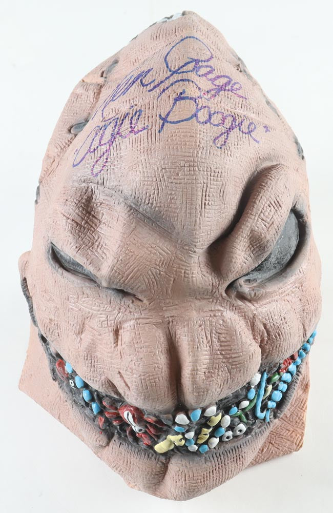 "The Nightmare Before Christmas" latex Oogie Boogie mask is hand-signed and inscribed by Ken Page (Oogie Boogie).
