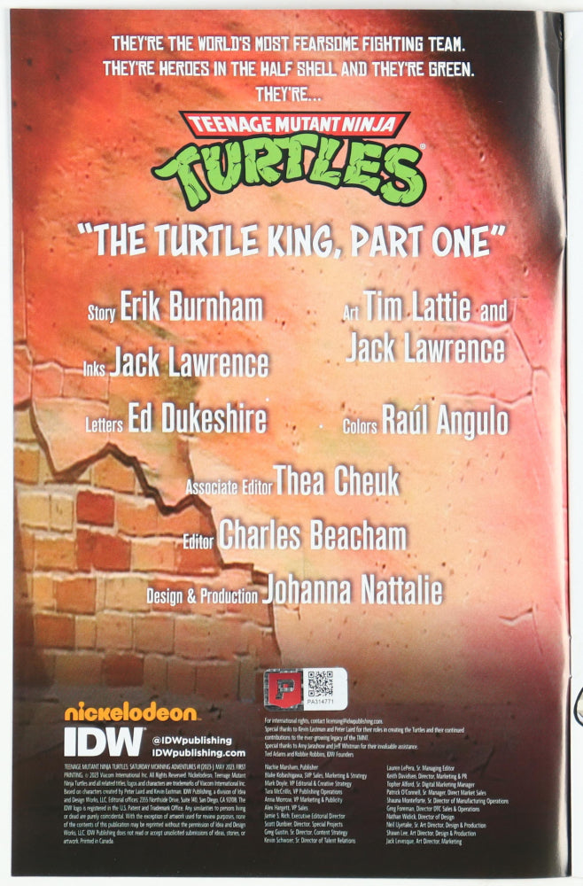 Kevin Eastman Signed "Teenage Mutant Ninja Turtles" Saturday Morning Adventures Cover B Issue #1 IDW Comic Book (PA) - Co-Creator of "Teenage Mutant Ninja Turtles"