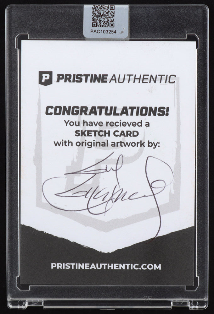 This sketch card includes original art by world-renowned illustrator, Guy Gilchrist.