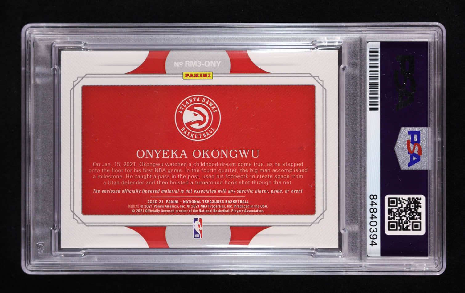 Onyeka Okongwu Signed 2020-21 Panini National Treasures Rookie Triple Materials #13 #60/99 RC (PSA | Auto Grade PSA 10) Autograph Graded PSA 10 | Rookie Card | Serially Numbered #60 / 99