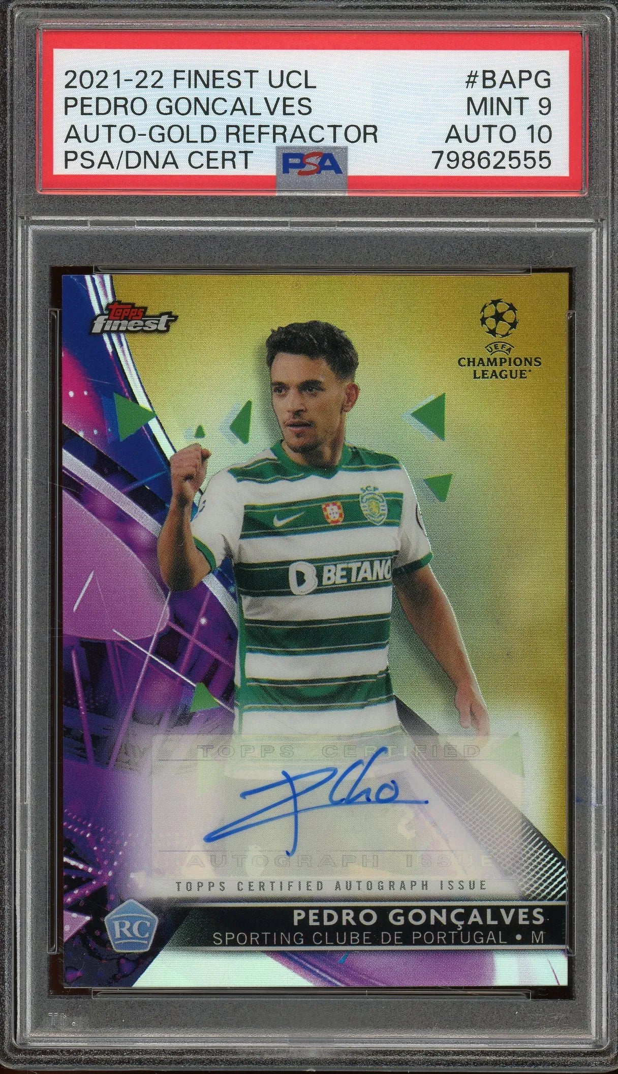Pedro Goncalves 2021 Topps Finest UCL Gold Refractor Autograph #BAPG RC – #1 Of 50 – Graded 9 (PSA) with 10 Autograph - Rookie Card