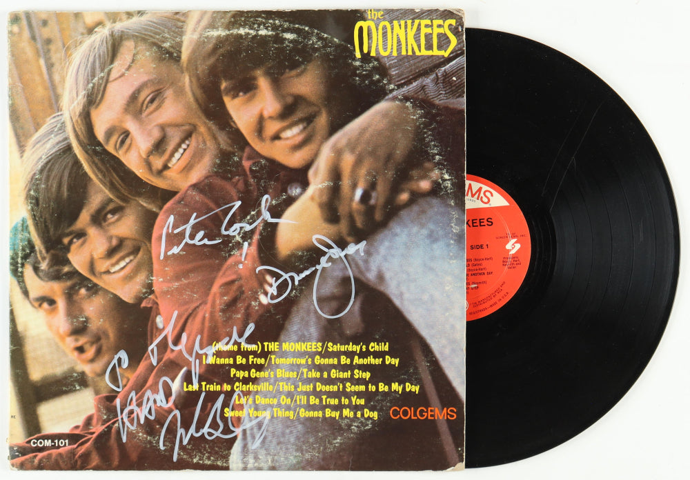 Album includes record and sleeve. Sleeve has been hand-signed and inscribed by Peter Tork, Davy Jones and Micky Dolenz.