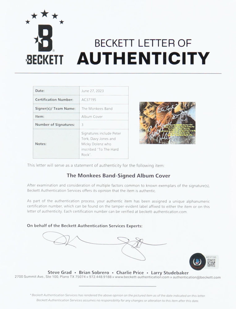 Peter Tork, Davy Jones & Micky Dolenz Signed The Monkees Self-Titled Vinyl Record Album Inscribed "To The Hard Rock" (Beckett)