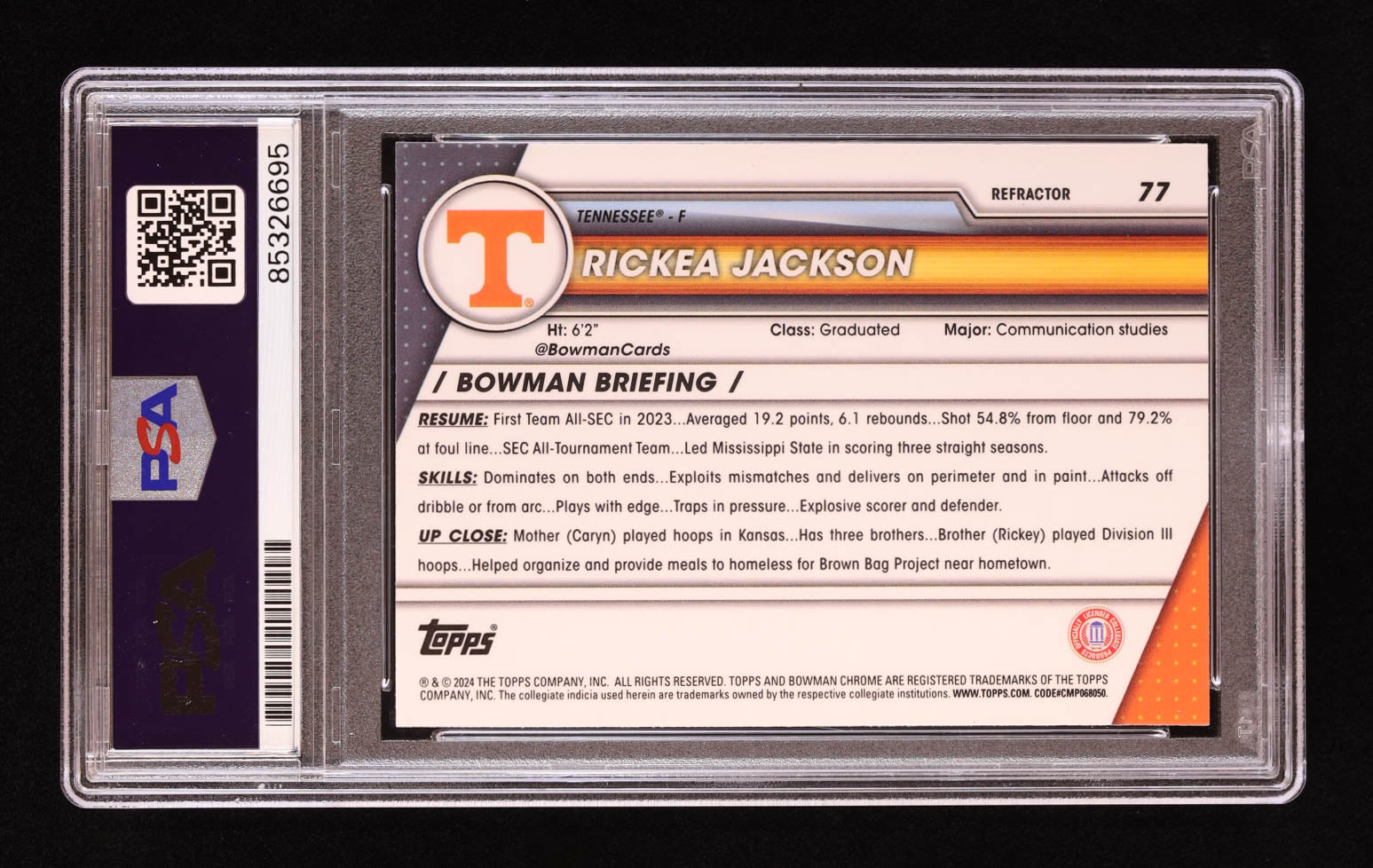 Rickea Jackson Signed 2023- 24 Bowman Chrome University Refractors #77 RC (PSA) - Rookie Card