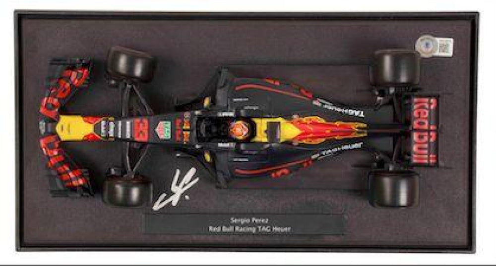 F1 Red Bull 1:18 Scale diecast Racecar has been hand-signed by Sergio Perez.
