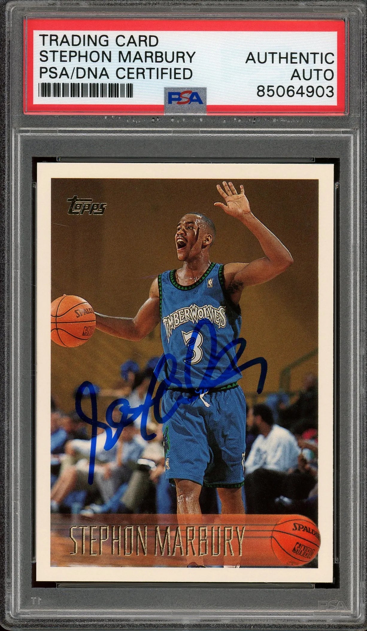 Stephon Marbury Signed 1996 Topps #177 RC (PSA) - Rookie Card