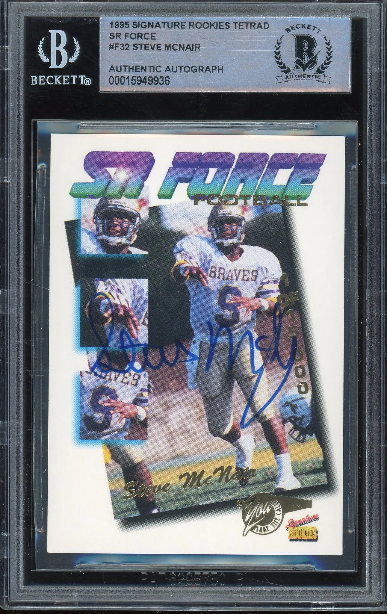 Steve McNair Signed 1995 Signature Rookies Tetrad SR Force #F32 RC (BAS) - Rookie Card