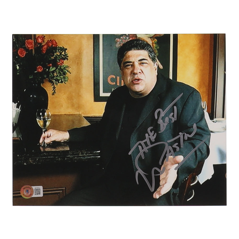 Photo measures 8" x 10" in size and has been hand-signed and inscribed by Vincent Pastore.