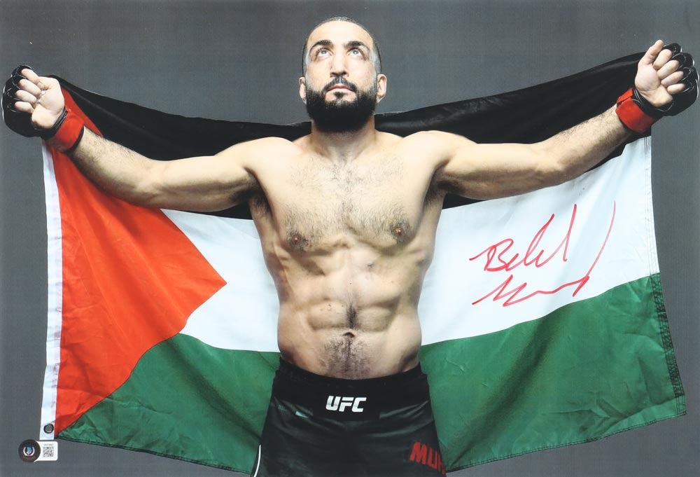 Photo measures approximately 13" x 18" in size. Hand-signed by Belal Muhammad (Welterweight Division).