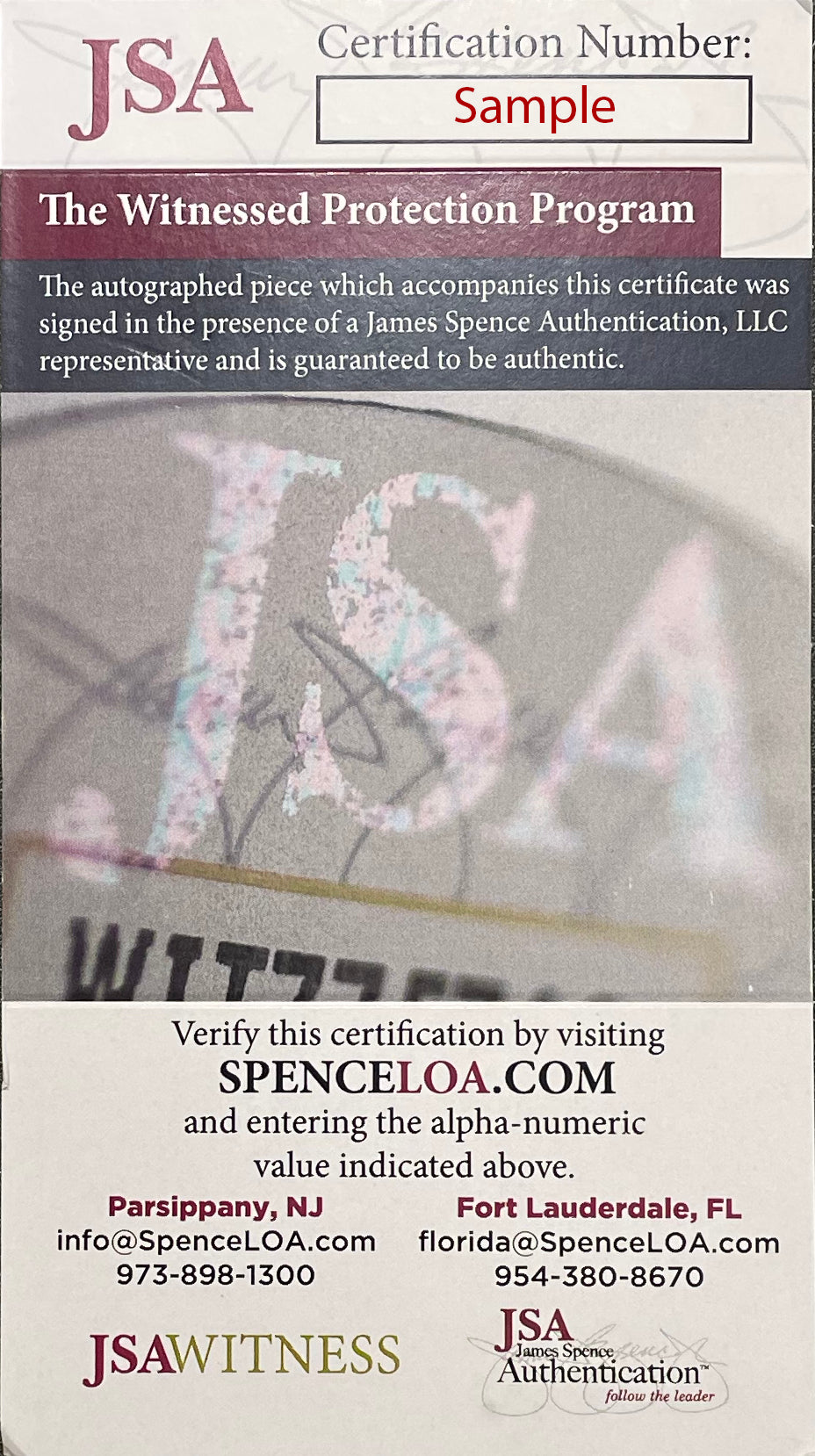 The autograph includes an official James Spence Authentication (JSA) hologram and matching COA for authenticity purposes. The signing of this item was witnessed by JSA.